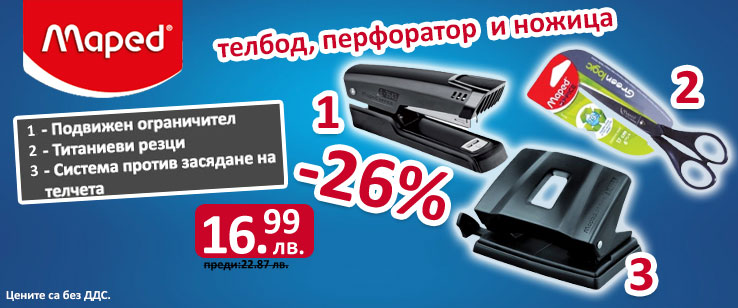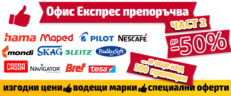 Офис Експрес гарантира сигурно и точно изпълнение на всяка поръчка, голям асортимент на склад, коректно партньорство и изграждане на дългосрочни отношения. Цените са актуални към 13.06.2022, актуализират се ежедневно и важат до изчерпване на наличностите или до 20.06.2022. Всички цени са без ДДС. Важи само при плащане в брой или авансово по банков път. Отстъпките са валидни само при покупка от електронния магазин www.offex.bg. Подаръците при поръчка не се комбинират с Лоялната програма и изписването на точки по нея. Не важат при покупка на офис техника и принтерни консумативи. Доставка според Логистичната карта на Офис Експрес. Виж тук.